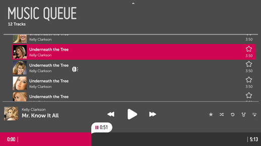In this case, clicking the Music Queue Action expands the drawer to fullscreen so that the user can interact with the Music Queue.
